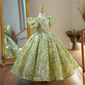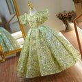 Elegant Princess Ball Gowns Girls Communion Green Sequin Mesh Pageant Dress