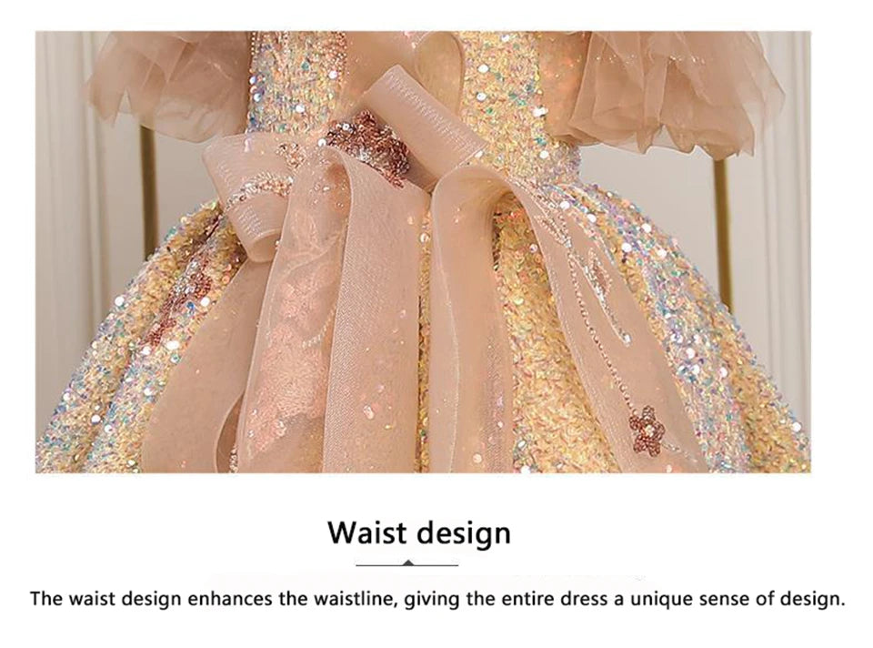 GIRL PRINCESS DRESS OFF THE SHOULDER GOLD SEQUINED