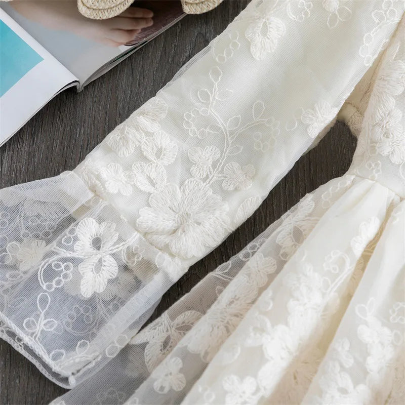 GIRLS AUTUMN LACE BAPTISM GOWN LONG SLEEVE DRESS