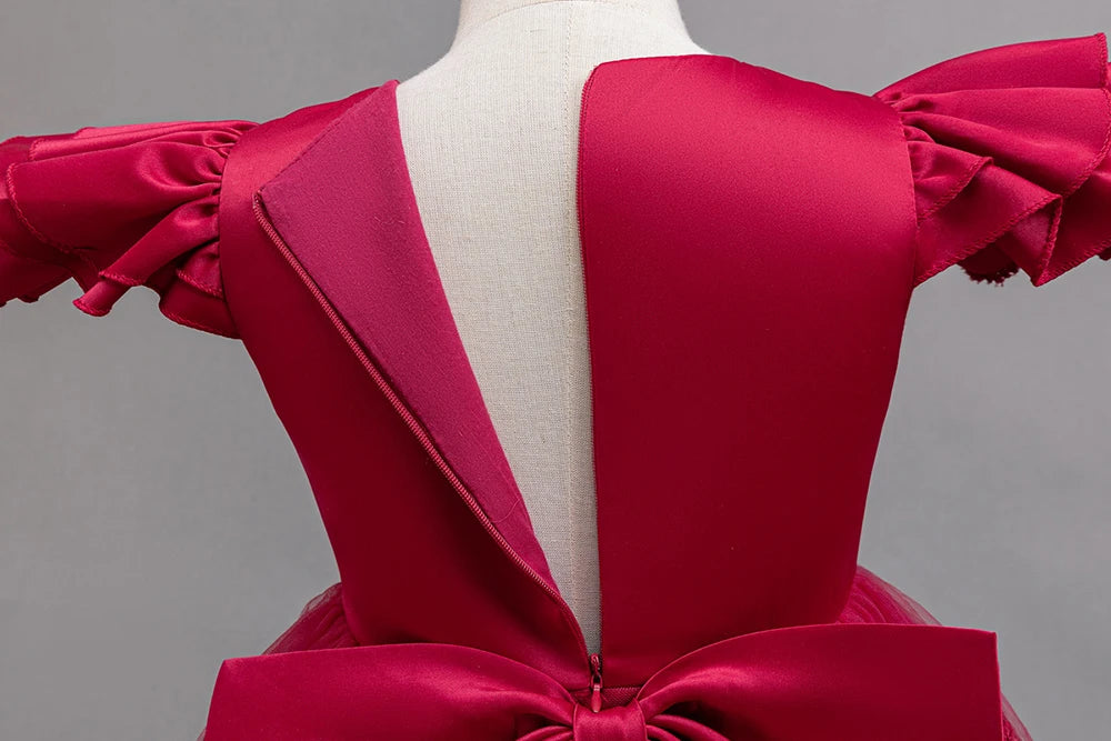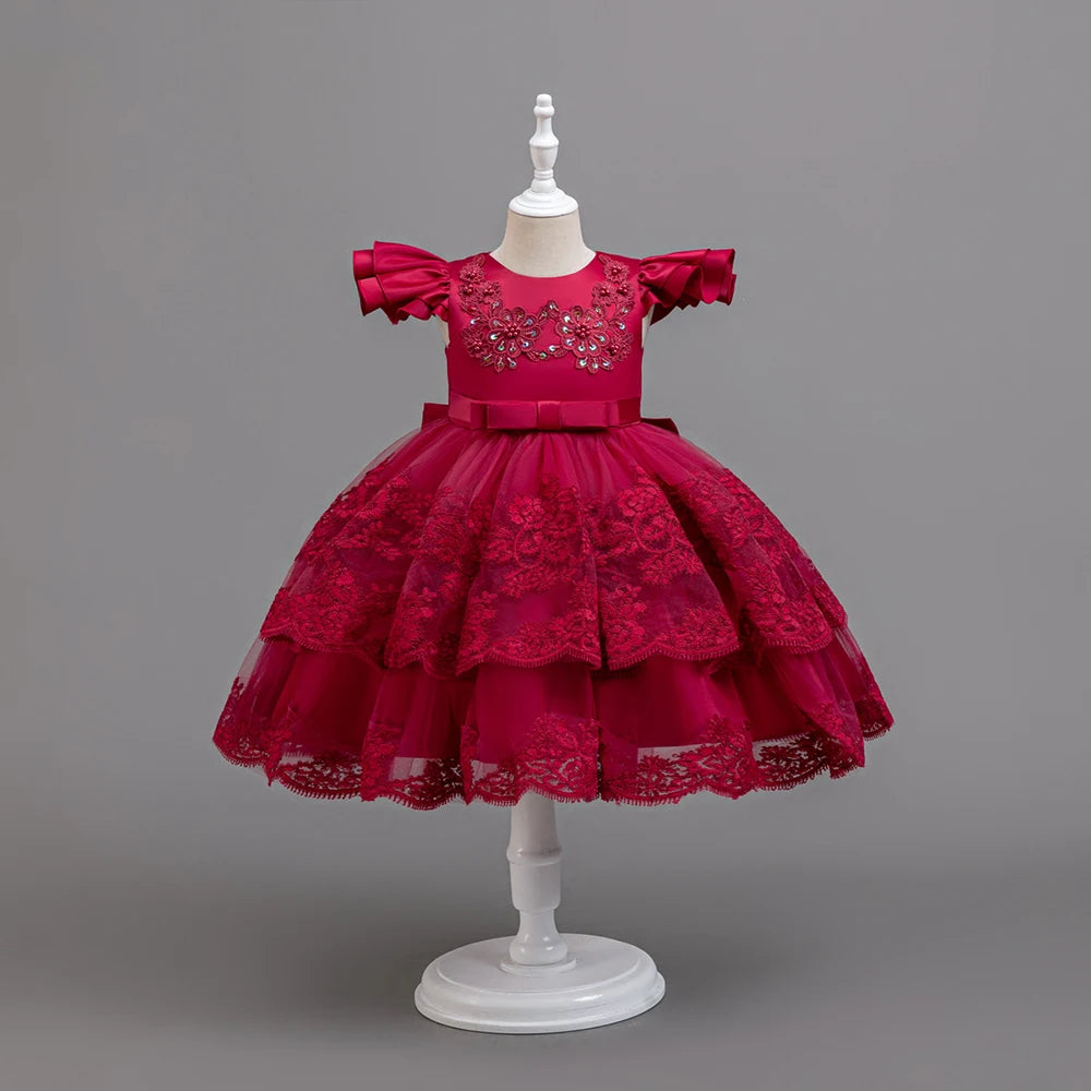 GIRLS CHRISTMAS PARTY DRESS RED LACE ELEGANT
