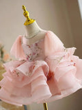 Princess Gown Bow Pearls Dress For Wedding Birthday Party